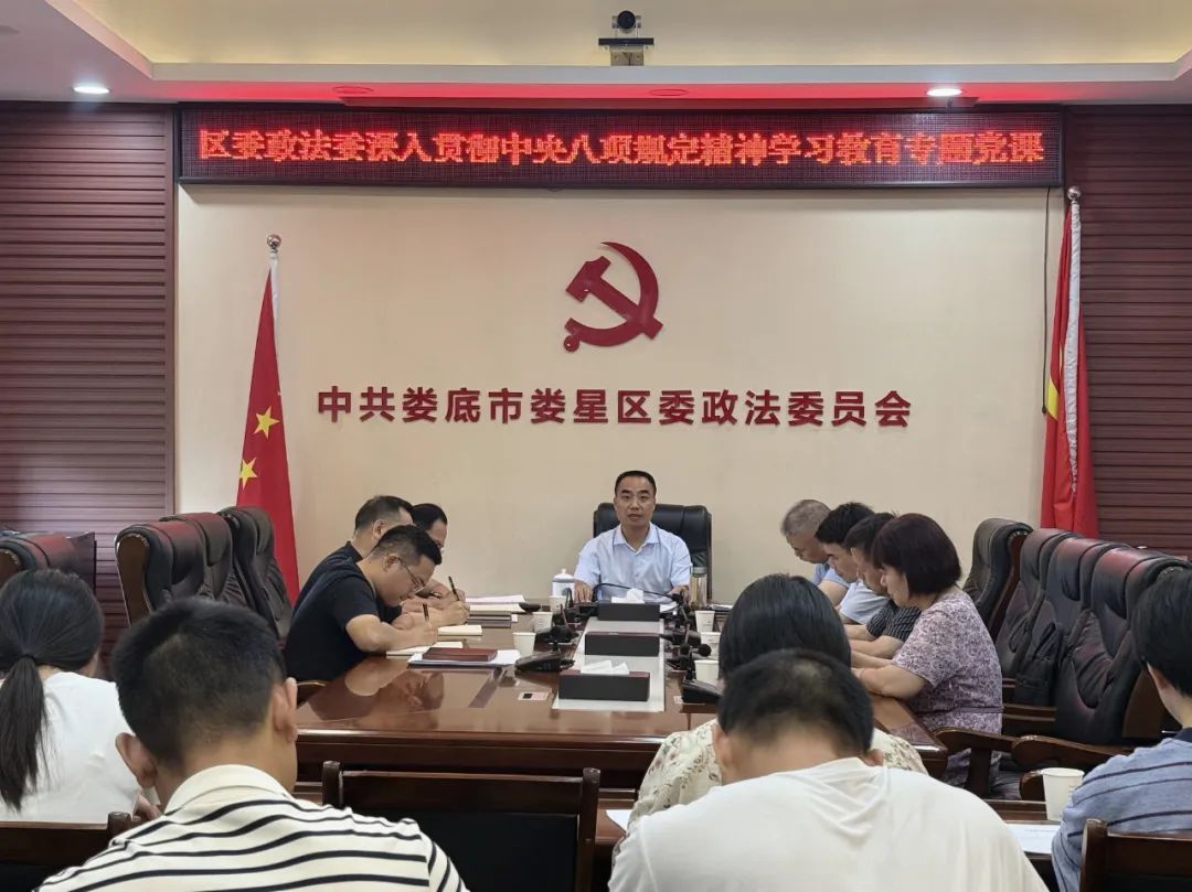 7月1日,娄星区委政法委机关开展庆祝中国共产党成立104周年暨深入贯彻中央八项规定精神学习教育专题党课活动,区委副书记、政法委书记吕许灵以《锲而不舍贯彻中央八项规定精神 持续推进作风建设行稳致远》为题,从深刻理解中央八项规定精神出台的背景及重要意义、准确把握中央八项规定的内涵及违反表现、持之以恒贯彻落实中央八项规定精神三个方面,为全体干部职工上了一堂深入贯彻中央八项规定精神学习教育专题党课。