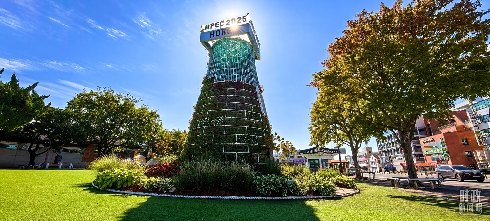 △庆州街头APEC主题花坛。(总台央视记者陈汉章拍摄)